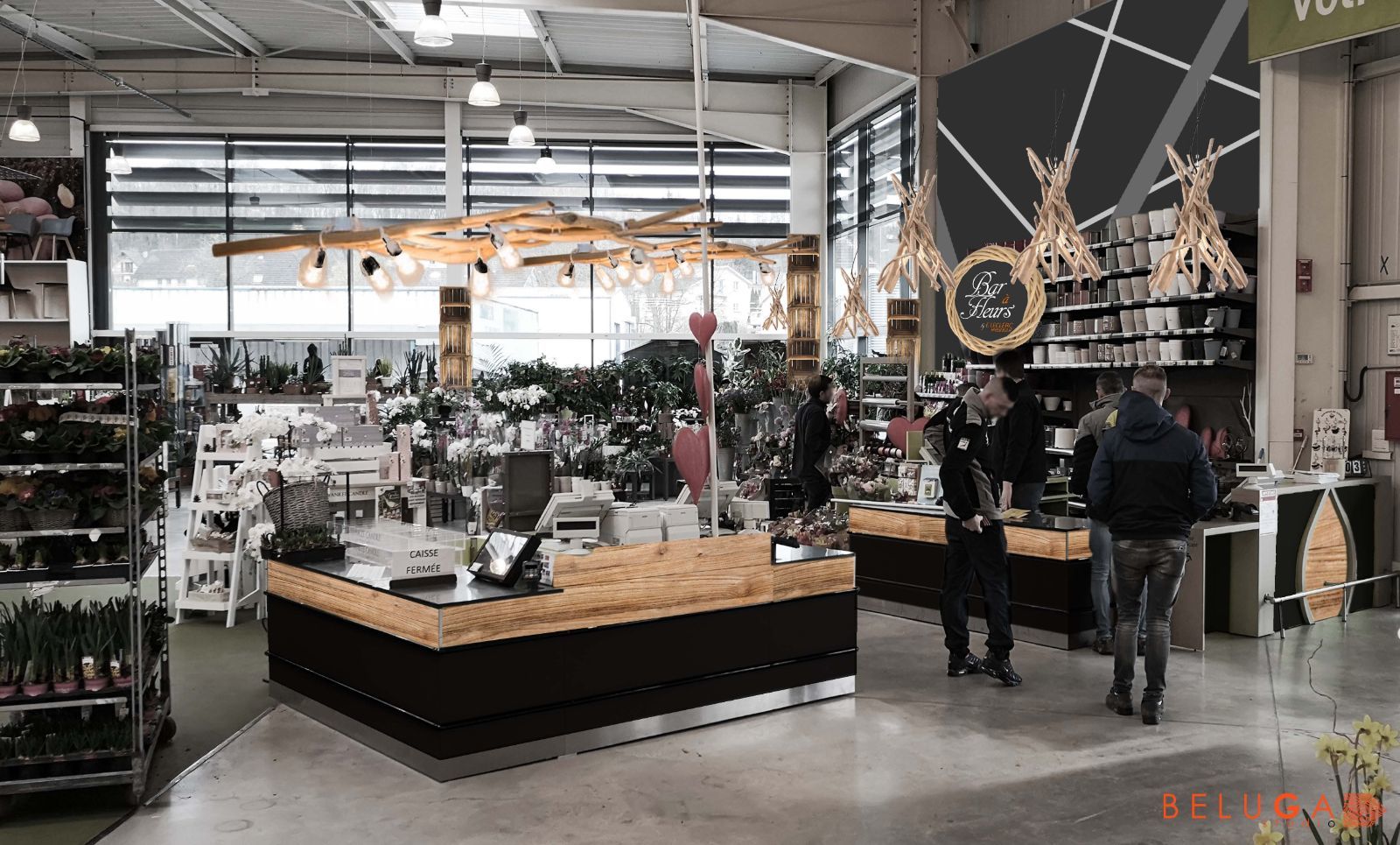 Rappel des matériaux avec des mobiles en bois flottés suspendus.