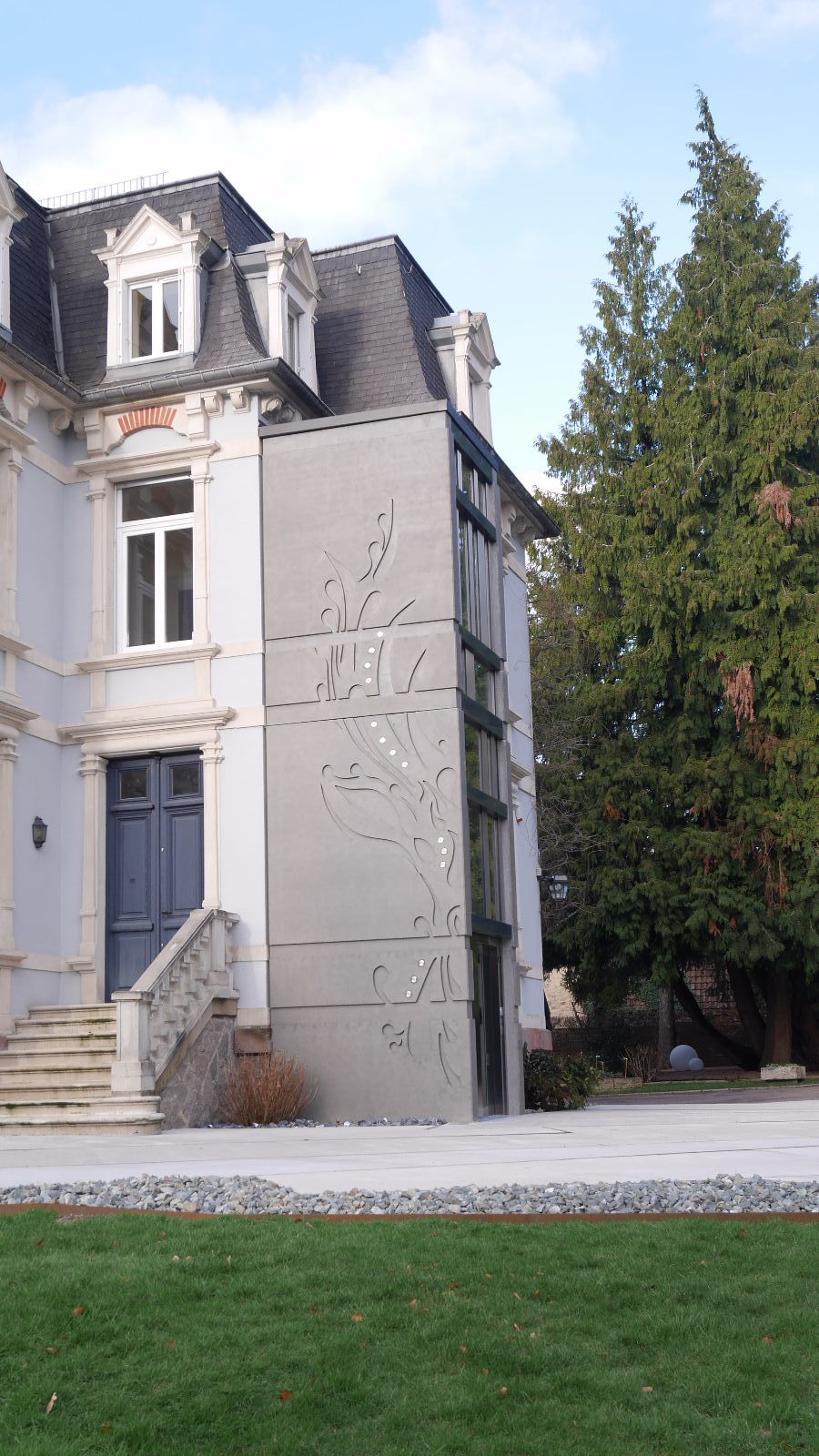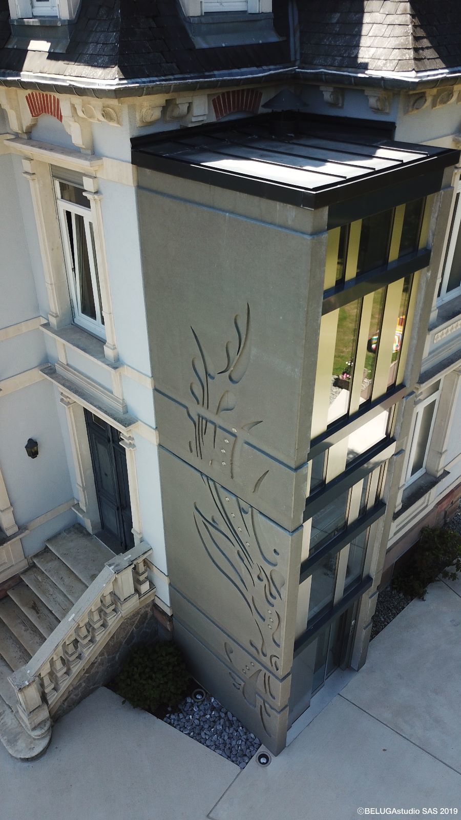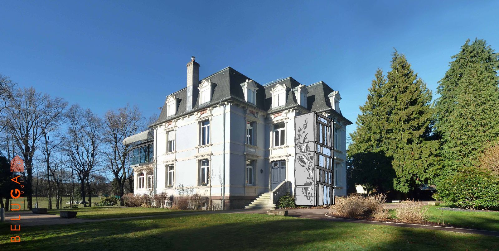 Façade vitrée reprenant les lignes directrices des modénatures de l'existant, tout en lui conférant un langage contemporain.