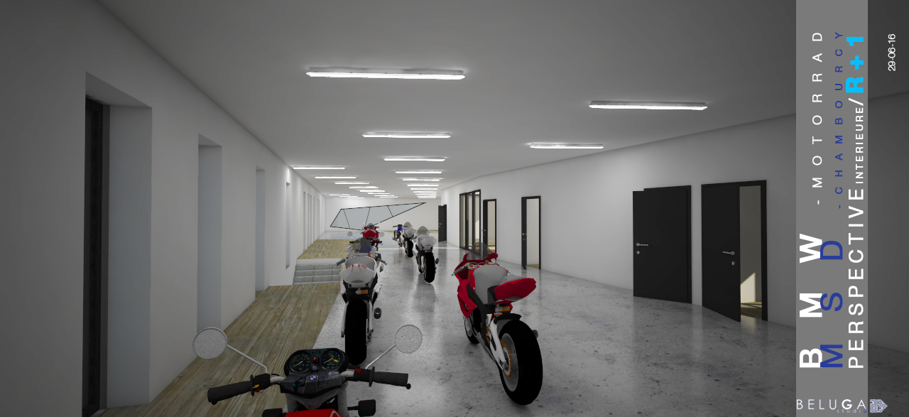 Dans un soucis de coût maîtrisé, le bâtiment se dote d'une vêture classique type bac acier mais en utilisant deux coloris afin de générer une dynamique aux façades. Toujours dans ce soucis de rythme et de dynamisme, les angles sont tronqués pour casser l'effet "boîte". La ligne "biaise" revient également au travers de l'aménagement intérieur mais aussi sur les menuiseries principales.