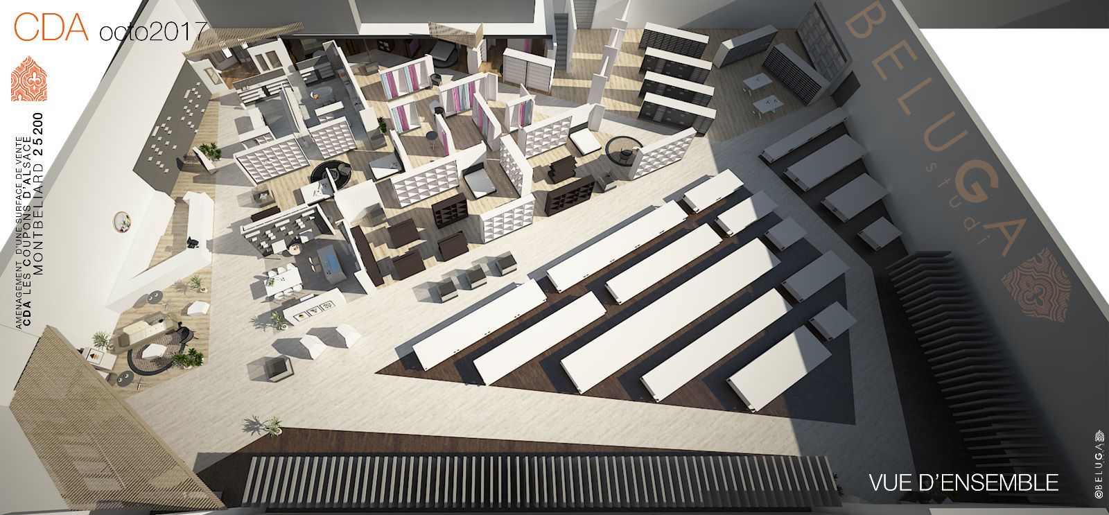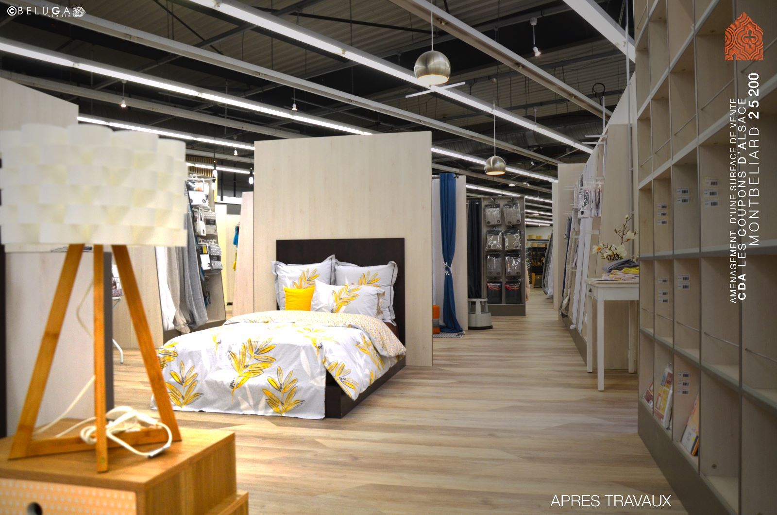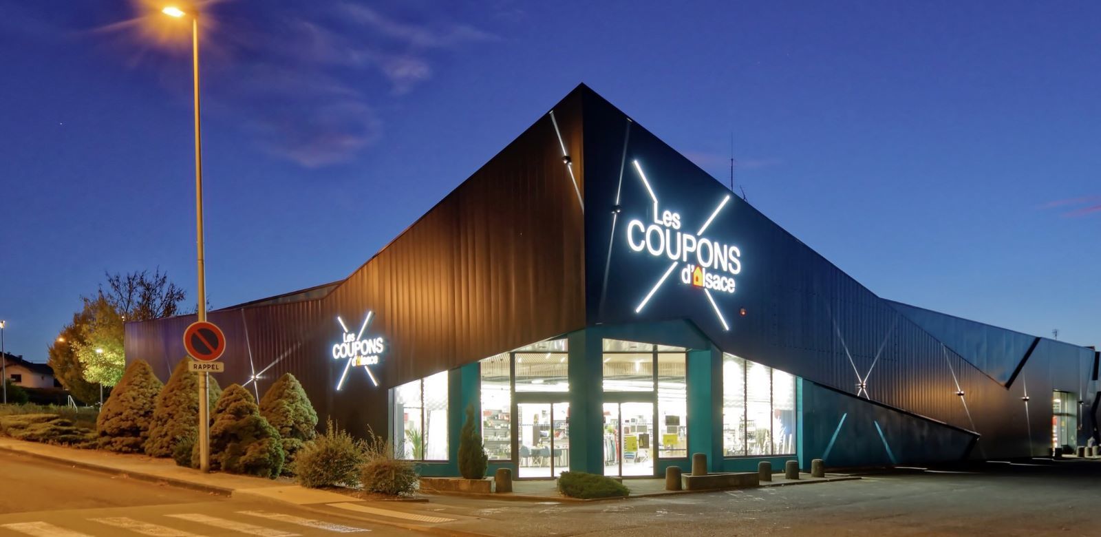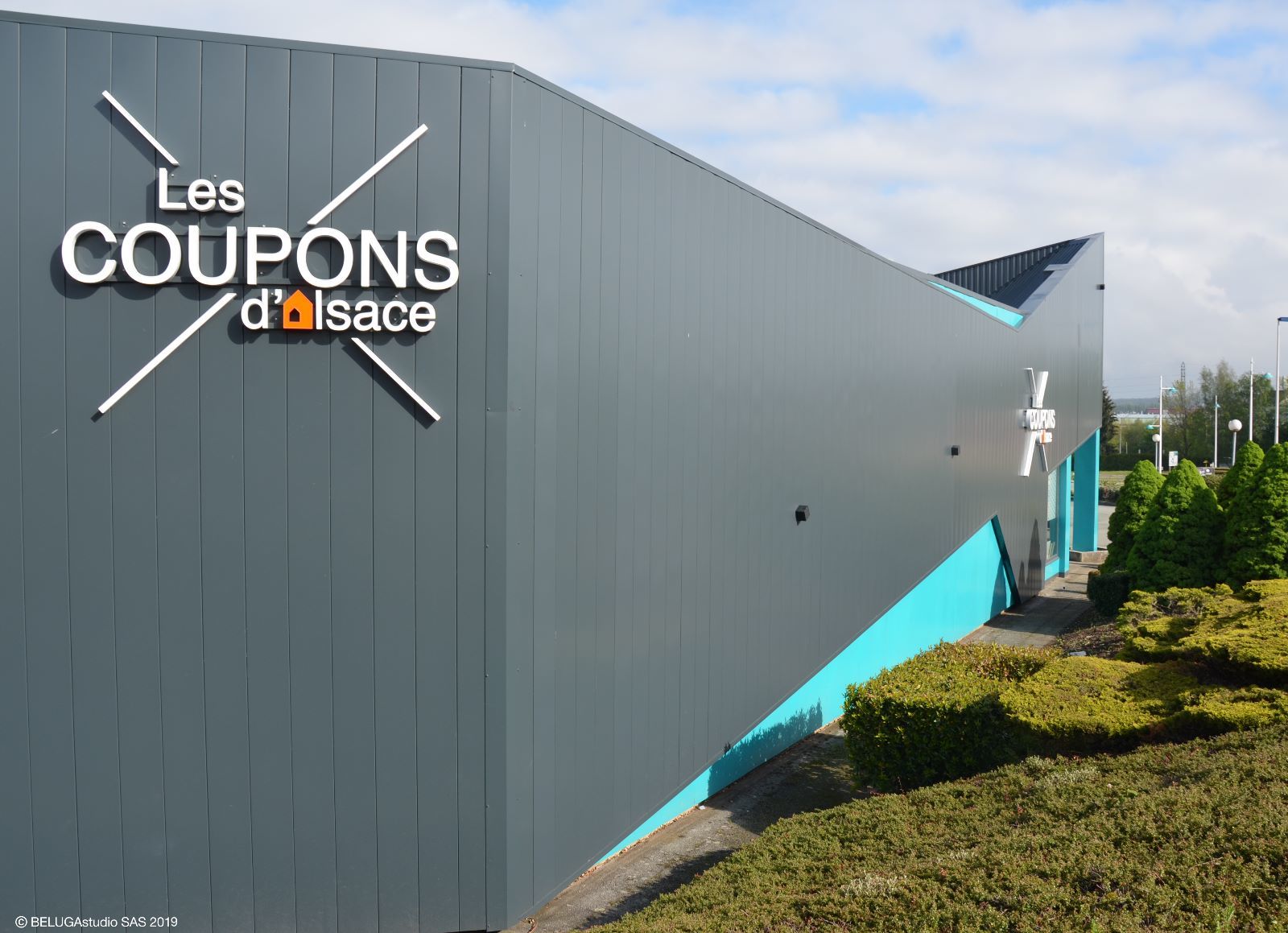 La réfection intérieure du magasin, couplée aux travaux de façades, a mené à la création d'u nouveau logo, qui s'insère et appuie le nouveau dessin du nouveau volume.