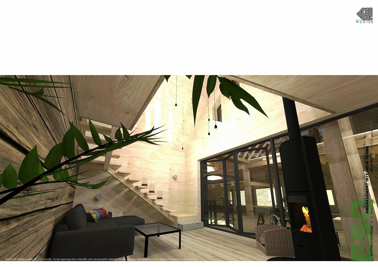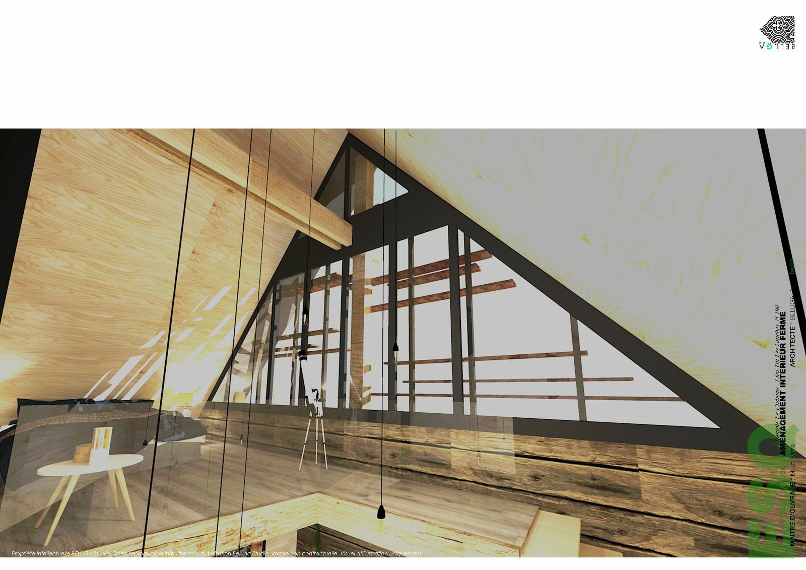Jeux et apports de lumières grâce à une grande fenêtre sous le toit.