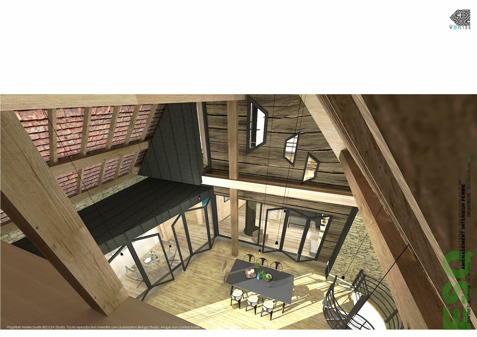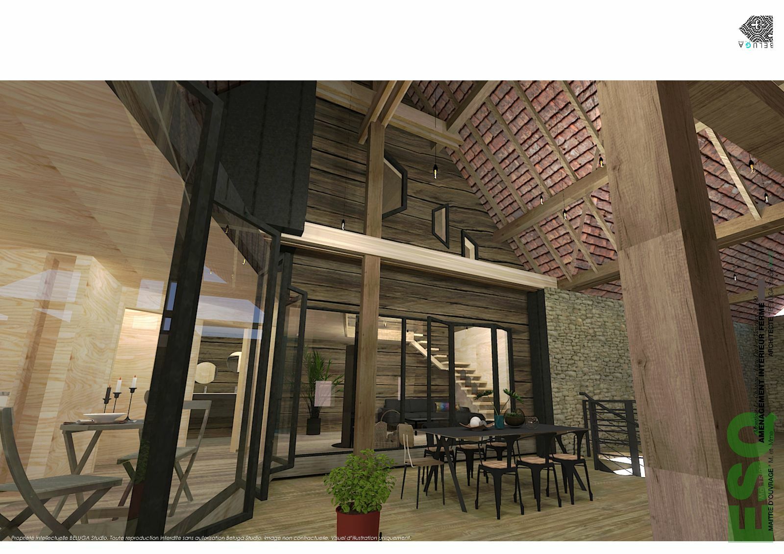 Grande hauteur sous plafond exploitée sur deux niveaux.