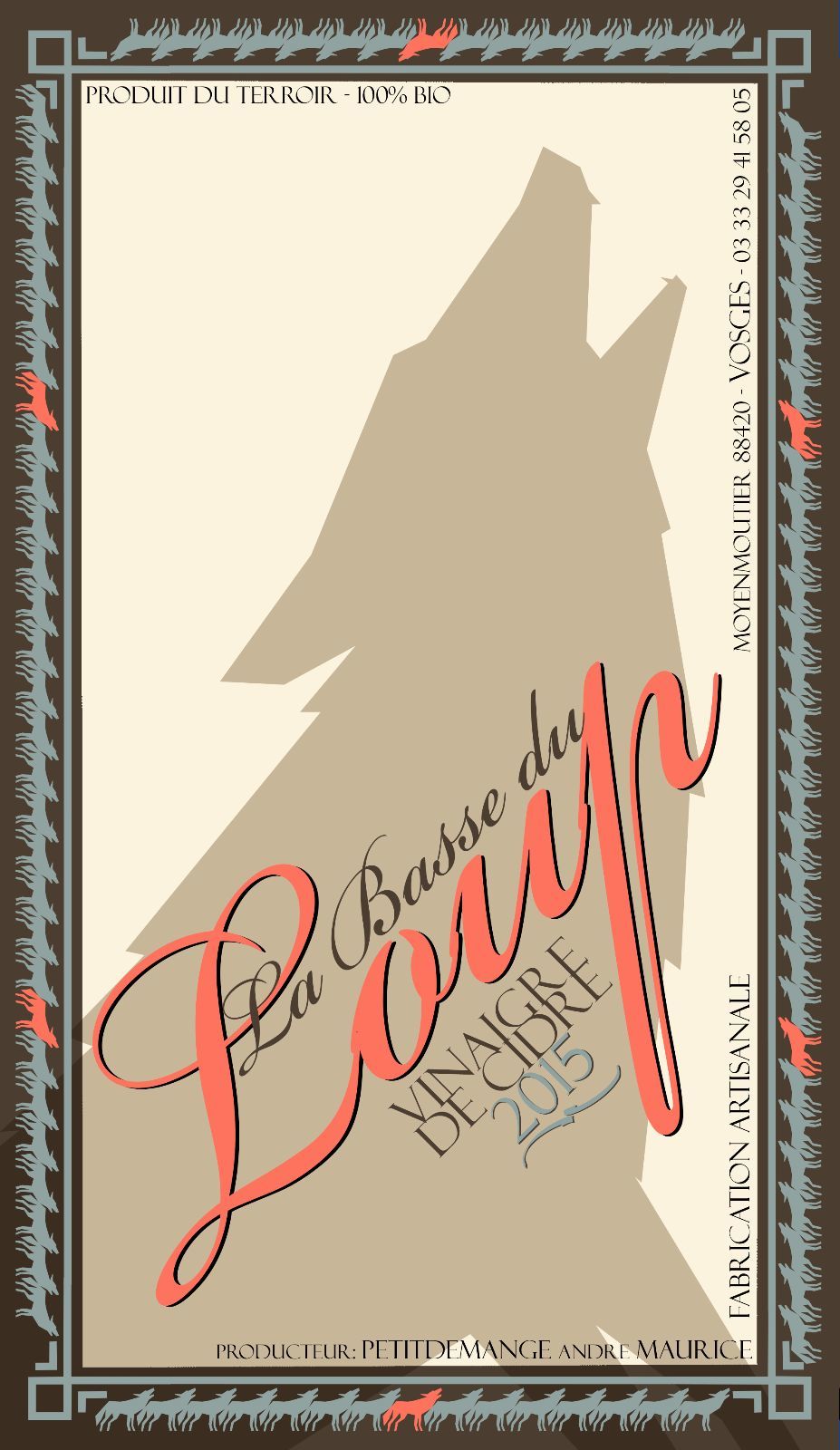 Réalisation d'étiquettes pour pruduction artisanale de bouteilles de vinaigre de pomme.